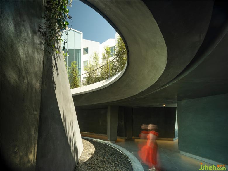 “作為MAD在美國首個建成項目,它很容易讓人聯(lián)想到洛杉磯經(jīng)典房屋景觀,一系列白色小山墻和尖屋頂從風(fēng)景如畫的綠色山坡中跳出來,非常幽默。馬巖松在傳統(tǒng)的邊緣翩翩起舞,看似與周邊事物截然不同,但又有奇妙的關(guān)聯(lián)之處。這與高迪在巴塞羅那的公寓有些共同點——它們都是城市景觀中的感嘆號。無論在任何城市,或任何規(guī)模,馬巖松總能反客為主、巧妙地把回應(yīng)轉(zhuǎn)化為自己的表達(dá),利用建筑給人帶來輕松、歡樂,或思考?!睍O(shè)計