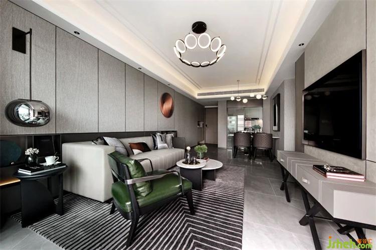背景墻延續(xù)客廳的精致現(xiàn)代風(fēng),用簡單的線條劃分了區(qū)域,深圳崗宏融湖居精裝提升樣板房設(shè)計(jì)以璧龕的形式存在背景墻中間,整個(gè)璧龕以不銹鋼裝點(diǎn),成為電視機(jī)頗具品味的歸屬??蛷d考究的家具、燈飾和軟裝飾品,無一不彰顯空間輕奢高貴的風(fēng)范。