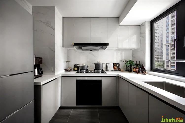 廚房是家里最有煙火氣的地方,我們能想到的尋常但又浪漫的事,就是與愛著的人共同在廚房忙活,用心烹飪,用愛料理,每一份佳肴的誕生,不單為溫飽,更是為了家庭成員的內(nèi)心滿足,我們自然不能允許它有一絲的污垢。深圳崗宏融湖居精裝提升樣板房設(shè)計(jì)最讓人心儀的廚房,應(yīng)該是明亮簡潔,便于日常清潔的。基于此,我們選用了淺色系亮面定制櫥柜,與白色明亮的波紋磚,組建了簡潔大方的廚房空間,選材也便于日常打理,為使用者省力。