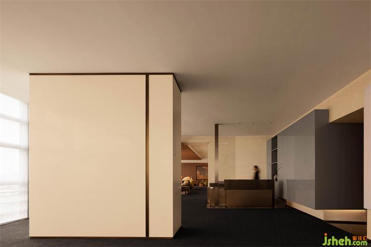 洽談區(qū)一側(cè)是大面積利落采光,另一側(cè)墻體為視覺上的凹陷設(shè)計,同樣是巧妙借用了建筑體塊營造空間感。仁恒前海夢公園售樓處設(shè)計采用百葉窗簾進行光線控制,可在一日之中隨著時間的變化而有不同的體驗。