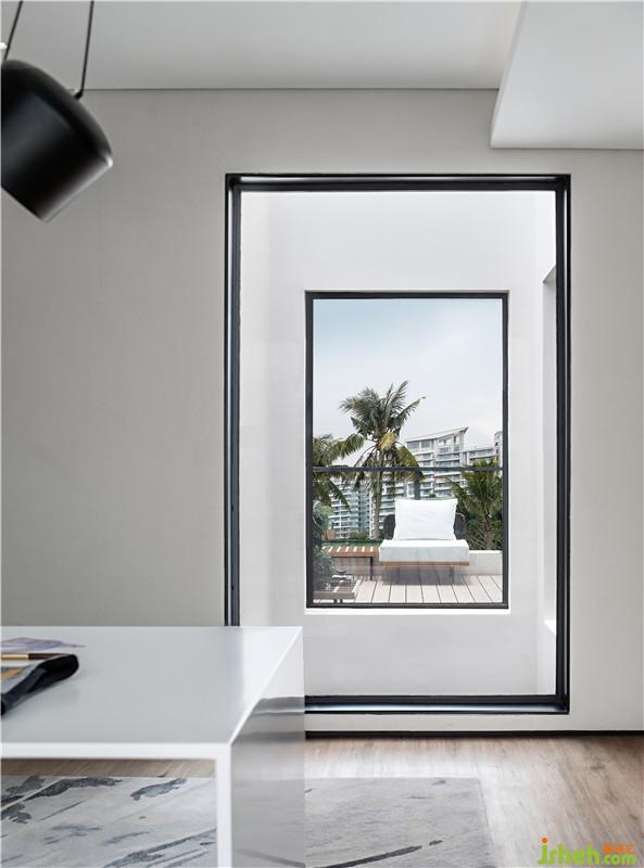 二層工作區(qū)域則通過動線的簡單重構(gòu),分立出工作、展示和休憩三個獨立的功能空間。工作區(qū)沒有過多紛繁復(fù)雜的裝飾,卻通過采光井巧妙地鏡框式設(shè)計,將窗外的景色凝入“畫境”,畫面隨著四季輪回、昏晝更替而變化,折射出的自然之美既是空間中的一抹點睛之筆,也是藝術(shù)家“師法自然”的靈感源泉。
