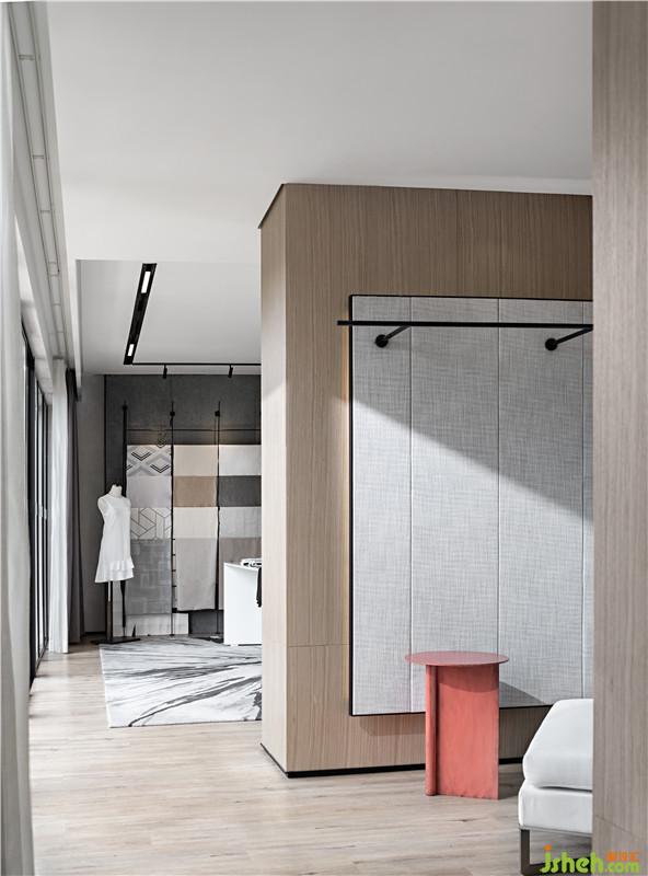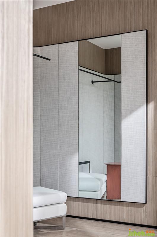 茶室與書畫廳構(gòu)成了相互貫通的空間格局,闡述了“茶通六藝”的中式哲學(xué)。通過石與木的相互銜接,仿佛將空間也進行了理性和感性的切割。室內(nèi)的中式家具與窗外的草色春光阻隔了外界的塵囂,在此靜心品茗一盞,給心靈以慰藉。