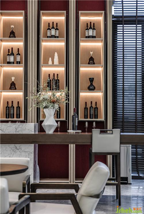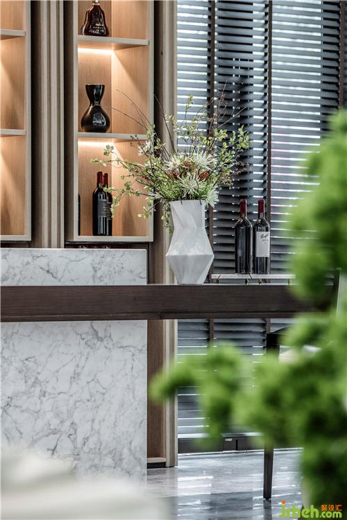 茶藝區(qū)以胡桃木材及大理石磚為主調(diào),水滴狀的玻璃掛飾以靈動(dòng)之勢緩緩落下,展現(xiàn)〝力〞與〝美〞的交互碰撞,使空間剛?cè)岵?jì),體驗(yàn)高貴典雅的恢弘氣勢。
