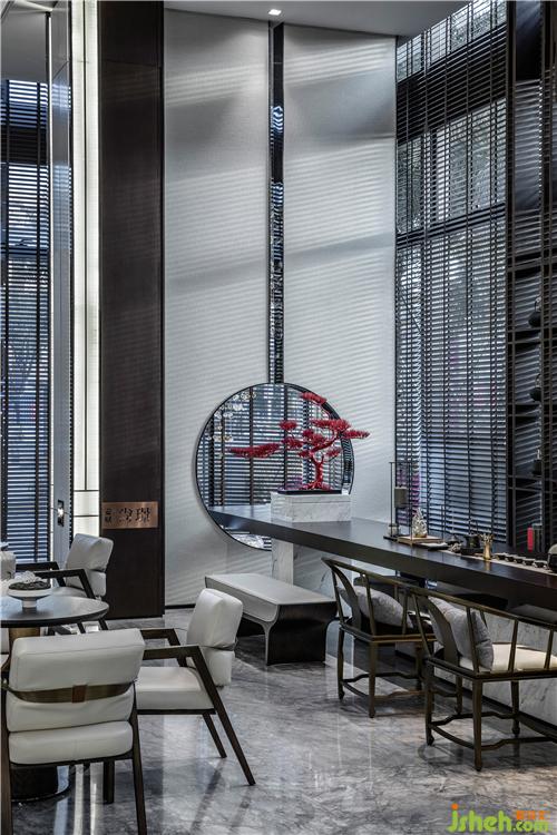 水吧空間設(shè)計(jì)呈現(xiàn)天然形態(tài)之美,現(xiàn)代元素下的中式營銷中心,每一處都盡顯優(yōu)雅。