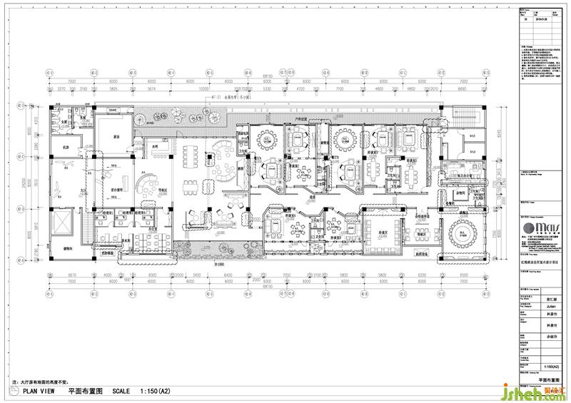 在餐廳里,古典建筑內(nèi)繁復(fù)的裝飾花紋被簡(jiǎn)化,以現(xiàn)代感的幾何圖案進(jìn)行重疊組合,致敬現(xiàn)代建筑大師弗蘭克·賴特。會(huì)所設(shè)計(jì)
