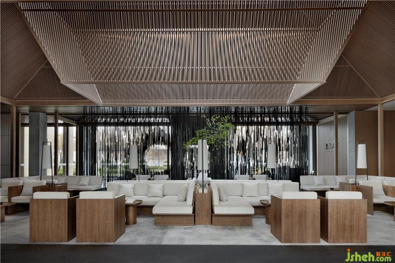 構(gòu)架的頂部吸收并運(yùn)用了中國(guó)古典殿閣與井亭的“盝頂”建筑造型樣式,形成四角上揚(yáng)收合的形態(tài),凸顯出生命氣息與能量聚合的理念,同時(shí)在聚合的頂部留出可呼吸的天窗氣口,充分地吸納天地靈氣和流轉(zhuǎn)的太陽(yáng)光線。從而形成“舍”的傾斜式頂部結(jié)構(gòu)部分。“盝頂”的運(yùn)用,產(chǎn)生出高低起伏、聚合離散的空間節(jié)奏,也營(yíng)造出林泉丘壑、山野幽僻的悠遠(yuǎn)意境。