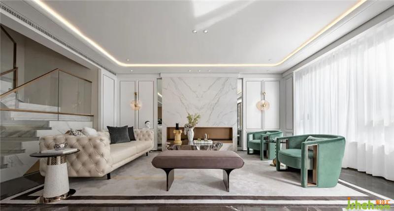 “如同一首浪漫的爵士樂,法式的優(yōu)雅是一段浪漫隨性的曲調(diào),慵懶中帶著經(jīng)典而迷人的韻味。循著這一定調(diào),在本案的疊墅中,我們將時尚感與藝術(shù)性兼具的Art Deco裝飾風格與當代都市生活相融,以細膩而生動的描摹,表達菁英階層的審美品味與生活方式。”