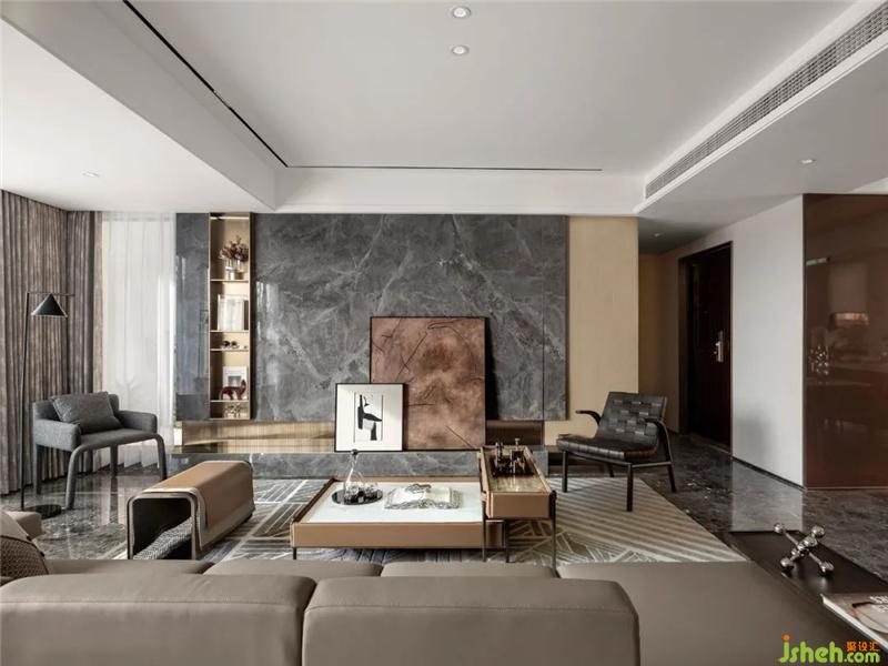 輕奢主義,是一種賦有儀式感的生活態(tài)度,它建立在人們對(duì)品質(zhì)、格調(diào)與美學(xué)的追求之上。在135㎡戶型中,設(shè)計(jì)師以愛馬仕文化為創(chuàng)作靈感,將精奢的細(xì)節(jié)、高級(jí)的質(zhì)感、雅致的魅力貫穿于空間中,呈演高于日常的生活精髓,以此還原高凈值人群對(duì)都市生活的新定義。