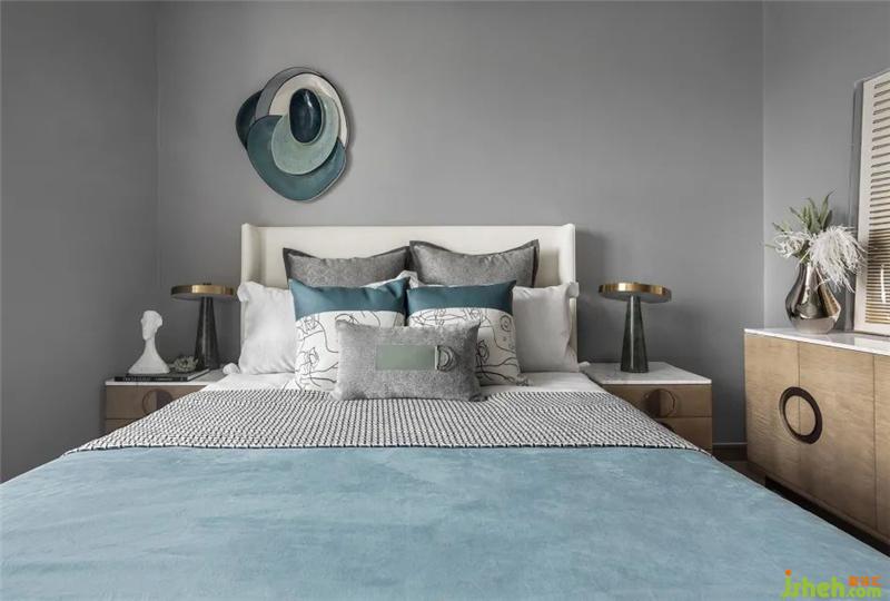 頗具質(zhì)感的藍(lán)色,加之木色與白色的穿插,調(diào)和出次臥沉穩(wěn)高級(jí)的美學(xué)視感。同時(shí)在軟裝搭配上,墻面的同色系幾何裝置、桌角處的金屬臺(tái)燈與人物石膏雕塑,從生動(dòng)的外部造型到內(nèi)里的精神世界,豐盈著空間的藝術(shù)內(nèi)涵,迸發(fā)出Art Deco鮮活的美學(xué)力量。