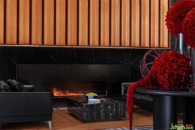 黑色系的墻面與啞光花崗巖、閃耀的燈光、浪漫的壁爐、黑色的真皮沙發(fā),局部點(diǎn)綴跳躍的紅與寶格麗珠寶綠,售樓處設(shè)計(jì)以寶格麗酒店的設(shè)計(jì)元素與理念精華,呈現(xiàn)意式生活的精致與優(yōu)雅。