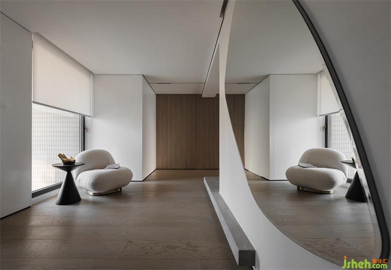 懸浮桌板貫穿了兩個(gè)區(qū)域,給空間帶來(lái)通透感以外也增添了互通性。