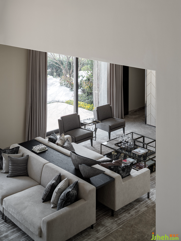 Junxi Mountain Villa is located in Liangzhu village Cultural Centre, at the highest point of the West Mountain Ridge of Baiyingjun. It is set between the Wulang mountain and Wulangshan reservoir, a beautiful scenery surrounded by mountains. The concept is inspired by the nearby Liangzhu Museum by David Chipperfield, "a jade cone scattered on the ground". The show apartment offers and elevated living experience located high in its surroundings, partially surrounded bycity, and partially immersed in nature. The spirit of untouched nature is key element to create an exquisite mountain villa.