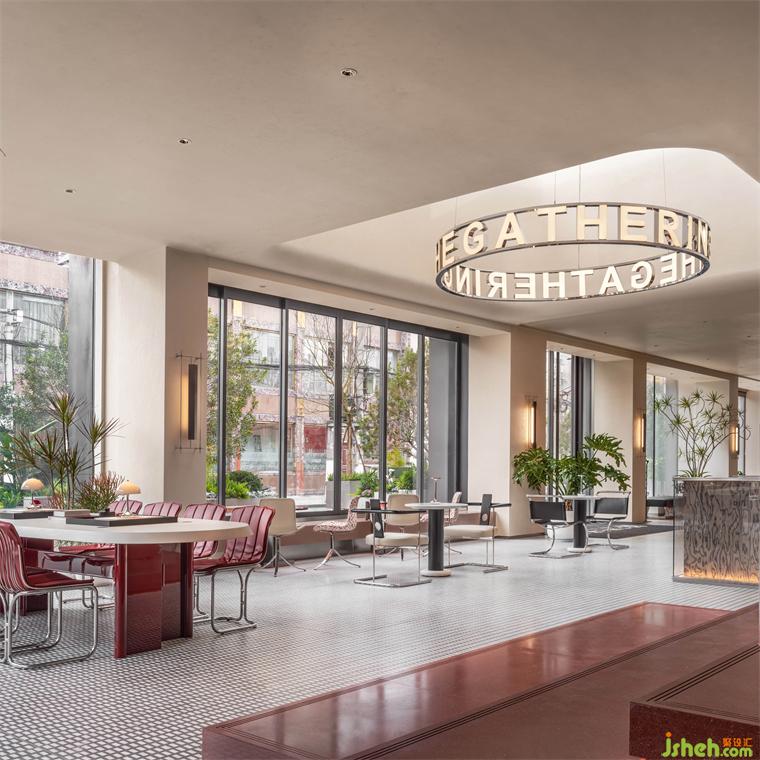 舊建筑的立面與海上和集建筑的開放式立面也展開了新舊對話。海上和集設(shè)計擴寬且?guī)в谢壍拇把厝菁{、伴隨并定義了鄰里可以以任何偶然的行為與空間與街道雙向互動??汕度胲壍雷杂梢苿拥倪呑?,裝修公司采用銀色的時尚工業(yè)風(fēng)格搭配簡約的紅色圓形玻璃桌面,成為街道的活力元素。