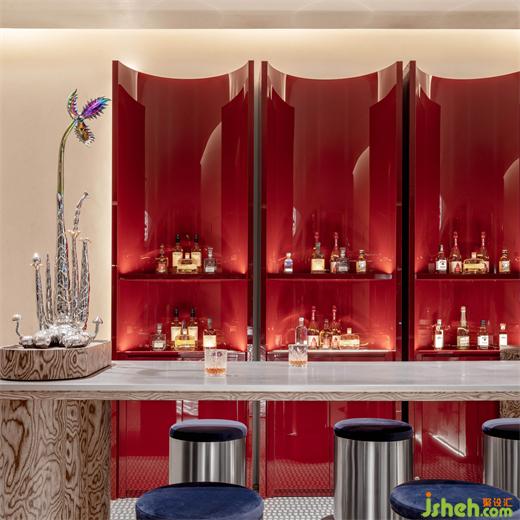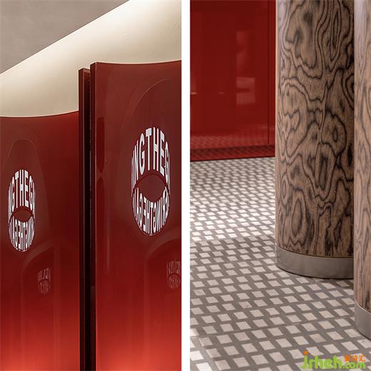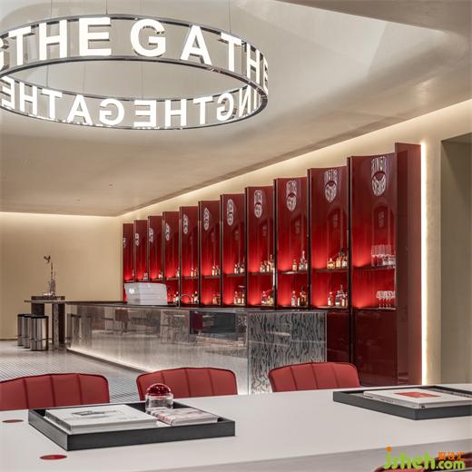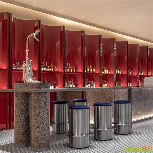 吧臺的木紋飾面被視為一種平面系統(tǒng),猶如咖啡與酒水的兩色交融,在視覺上與空間早C晚A的功能相呼應(yīng)。吧凳的設(shè)計靈感來自于工業(yè)管道?!吨厣?永生花》裝置來自藝術(shù)家張藝法,隱喻著楊浦濱江從“工業(yè)銹帶”到“生活秀場”的更迭現(xiàn)象。