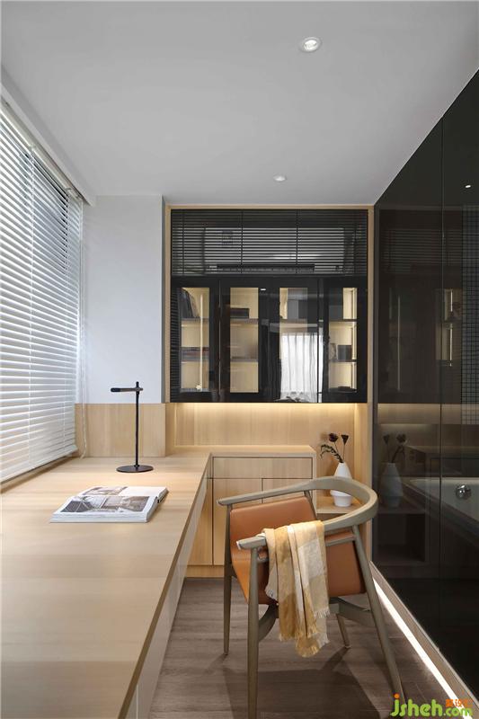 ▲光影下的書(shū)房,陽(yáng)光透過(guò)百葉簾,走進(jìn)房間,增添了一絲溫柔!