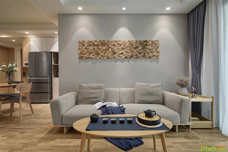 餐廳區(qū)域和客廳是兩個(gè)方形空間錯(cuò)位連接,柜體的設(shè)計(jì)靠墻是最節(jié)約空間的方式之一,正好可以利用此格局,依墻設(shè)計(jì)L型餐邊高柜、收納柜、冰箱、烤箱的位置??筒蛷d收納的問題解決了,但是由于收納柜多了很多,餐廳的空間通透性卻減少了。如何擴(kuò)大餐廳的通透性、同時(shí)讓整個(gè)空間所需要的日式風(fēng)格能夠很巧妙的呈現(xiàn)出來?