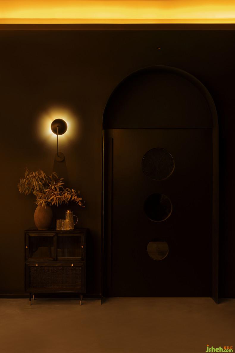 追求整體效果的建筑師用色和造型都相當克制:排列整齊、轟趴民宿設計序列感極強的酒柜沿著彎曲墻面一直延伸到天花,圍合出酒吧卡座區(qū)的吊墜燈線圈層干凈利落,帶有懷舊的未來感。