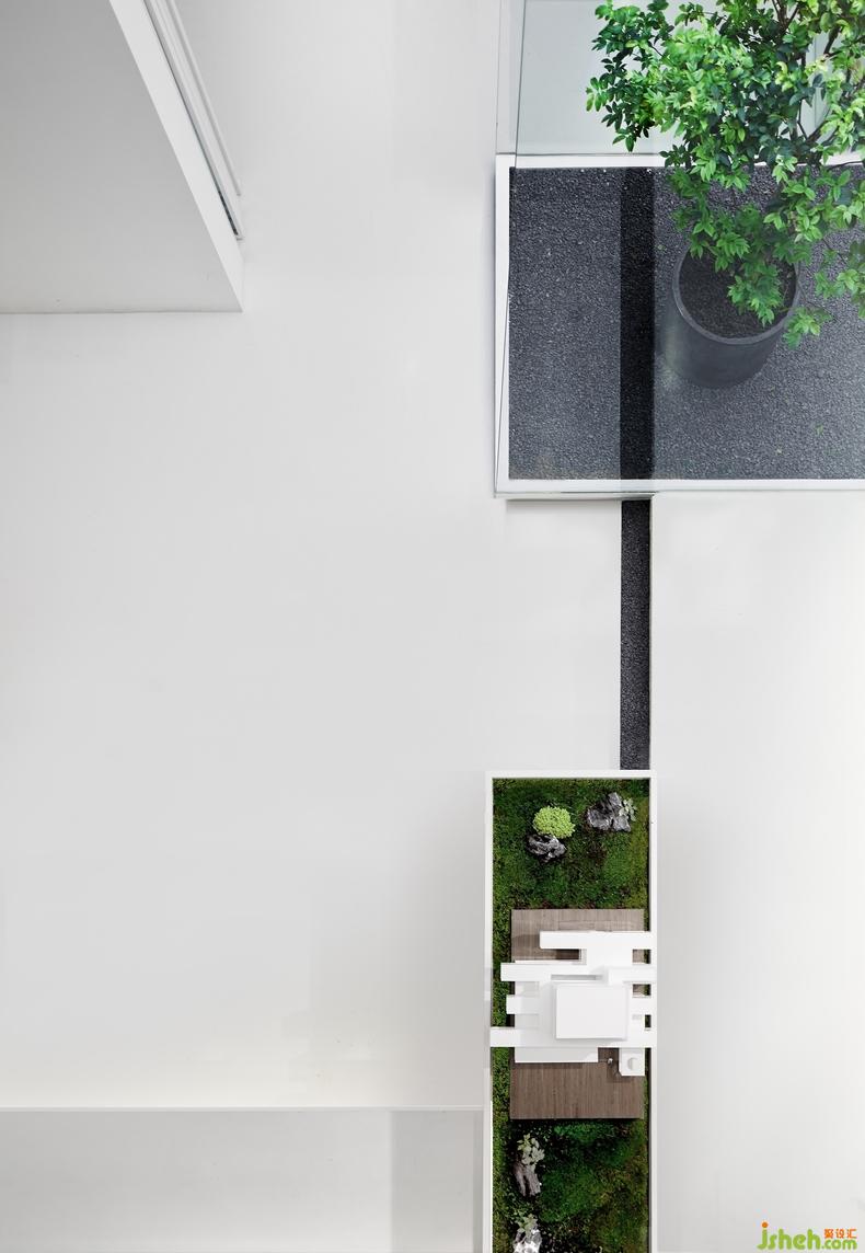 設計中剝除了材質(zhì)與色彩干擾,純白空間的運用強化了空間的關系和氛圍,同時讓室內(nèi)的植物蔥郁而又安寧。設計師試圖在空間中打造出多樣化的園林空間,連續(xù)的平面布局在封閉,半通透,通透的空間中,東方式的猶抱琵琶半遮面,未成曲調(diào)先有情。
