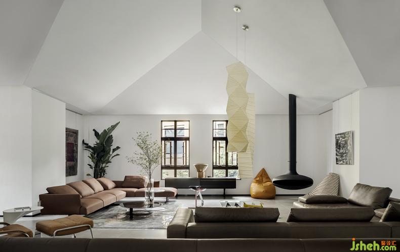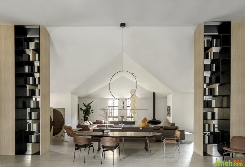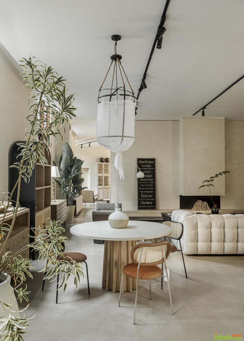 中庭區(qū)域,將天光引入,空間與材質(zhì)配合借景,用綠植創(chuàng)造出一個(gè)半環(huán)繞式的空間,引導(dǎo)流線向更深處前進(jìn)。同時(shí)增加中央?yún)^(qū)域的通透性,緩解人游走過(guò)程中的疲憊感。