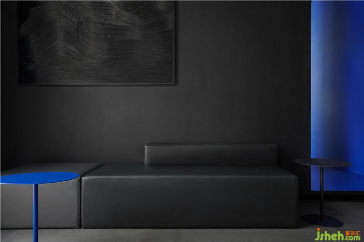 等候區(qū)的桌椅隨意擺放,大小不一、顏色深淺變化,類似俄羅斯方塊,增加了空間的趣味性。設(shè)計(jì)者嘗試打破傳統(tǒng)的枷鎖,糅合金屬、皮質(zhì)、漆面等元素,粗獷與細(xì)膩、力量與柔美、釋放與孤寂在此碰撞共生,可以說(shuō)是一次設(shè)計(jì)的變奏!