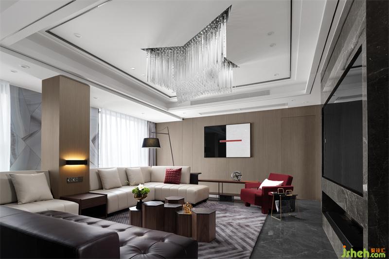 在客廳區(qū)域,搭配特別定制的水晶燈(寓意璀璨之星),根據(jù)現(xiàn)場(chǎng)空間定制的沙發(fā)、有趣的茶幾,黑白相間的藝術(shù)掛畫、極具沖擊力的機(jī)器人椅子,詮釋著空間的美學(xué)尺度。