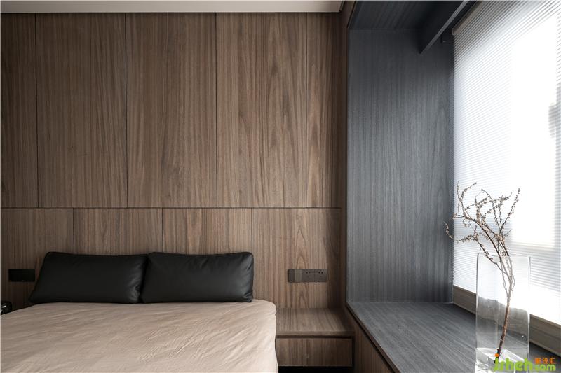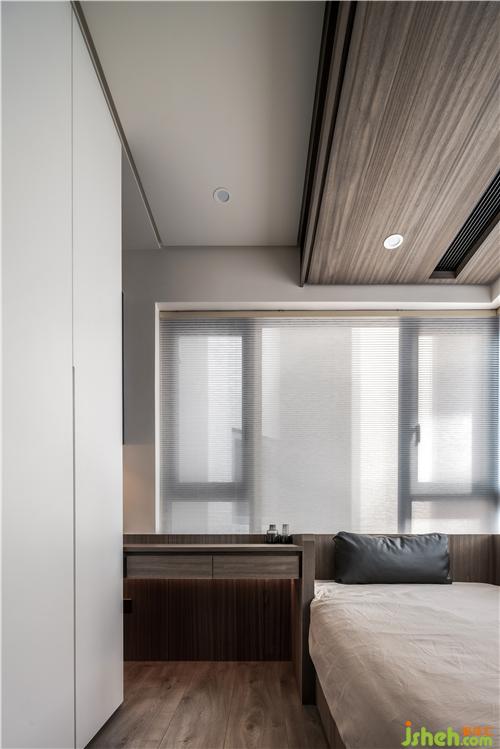散發(fā)沉靜而安穩(wěn)的睡眠調(diào)性,其余立面及天花板則維持木色,延伸至白色的天花再到白色柜體,使整體視感仍然顯透輕盈。