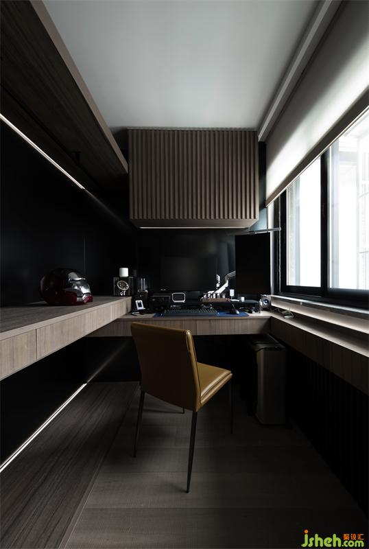 多功能房是居所中很重要的一處區(qū)域,用黑鋼統(tǒng)一與公共空間的色調(diào)。木子仁設(shè)計推拉式移門可讓書房同時擁有私密與開放兩種功能。內(nèi)部定制掛墻展示架以及儲藏手辦玻璃柜,讓屋主在工作以及制作手辦時,能夠有很好的沉浸式體驗。