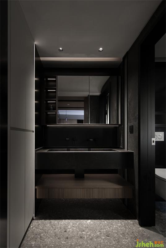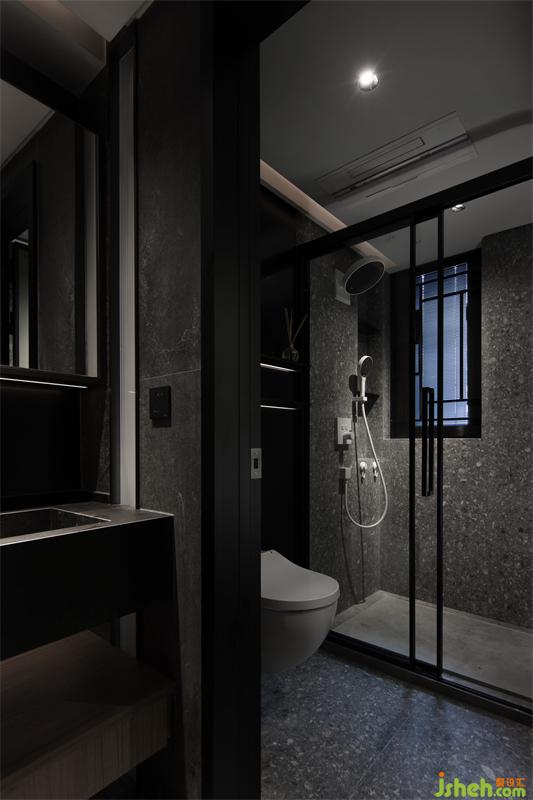 黑色石材大面積鋪貼為空間注入安穩(wěn)的氣氛,利用百葉窗將陽光進行過濾,空間在與自然融合過后顯得更輕盈氤氳,讓使用者擁有對生活更細致的體察。