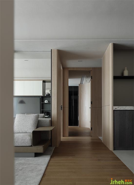空間以木包裹,保留原始的材質(zhì),視線和光影穿越受到的阻力,增加了空間的流動性。