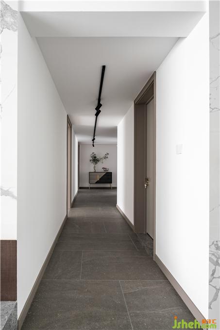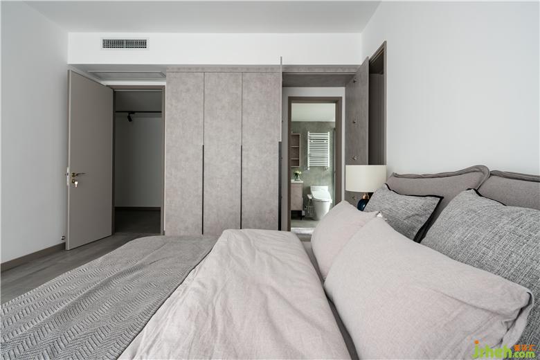 置于內(nèi)墻的衣帽間增加了空間的利用率,而透明柜的設(shè)計則充分滿足收納及選擇等功能上的需求。裝修設(shè)計
