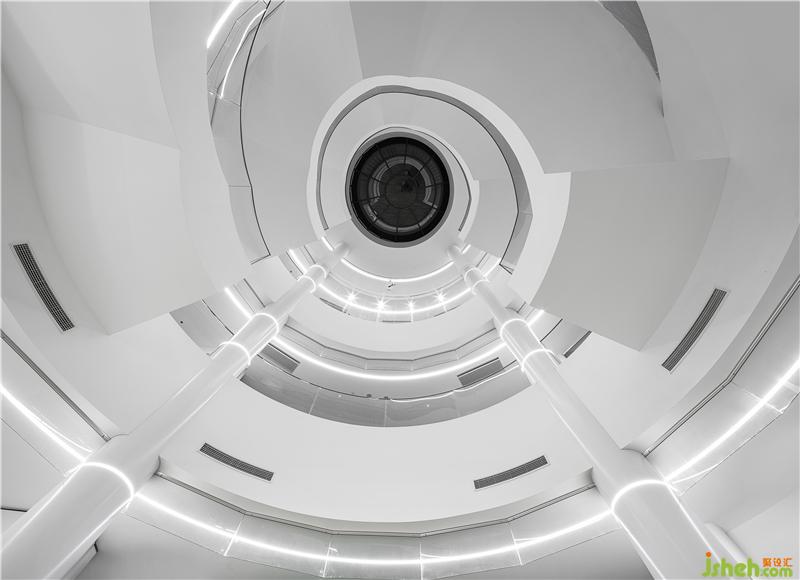 得益于建筑中庭頂部的采光玻璃,將頂部的自然采光最大限度的引入到各個(gè)樓層空間