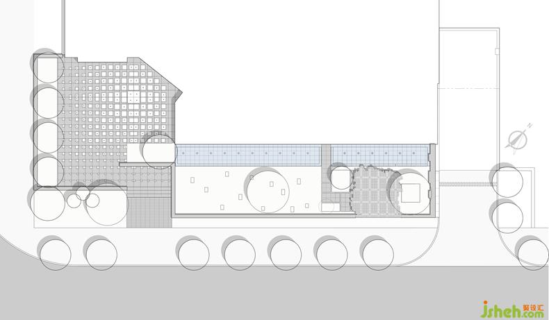入口廣場(chǎng)由禮序前廳和特色廣場(chǎng)兩個(gè)空間構(gòu)成,后退的景墻設(shè)計(jì)弱化城市與宗地的界分感,同時(shí)空間更顯開闊大氣而又不至于一覽無余,簡(jiǎn)單中的微妙轉(zhuǎn)折,更新著人們的視覺感受。
