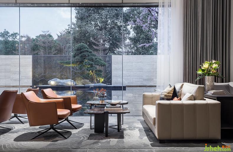 舒適地毯自然地劃分出洽談區(qū),整體開放性的布局,促進(jìn)多元化的交流與互動(dòng),同時(shí)落地玻璃向環(huán)境借景,呈現(xiàn)出一個(gè)融合卻又獨(dú)立的利落空間.