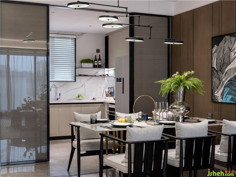 人創(chuàng)造了空間,空間反哺于人,餐廳區(qū)通過(guò)兩扇玻璃門將光線引入室內(nèi),同時(shí)也將儀式感端上餐桌,營(yíng)造舒適的用餐氣氛,舒暢人的心靈。