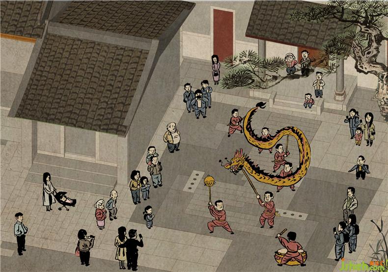 開闊前廣場加強(qiáng)了這一場所的凝聚力,為日后的生活場景留足施展余地,裝修設(shè)計如節(jié)慶聚會、民俗活動、百家宴等。鄉(xiāng)土鋪裝使建筑與周圍環(huán)境有機(jī)融合又富有變化,營造出一個有濃厚歷史文化氣息,同時充滿樂趣的藝術(shù)和生活空間。