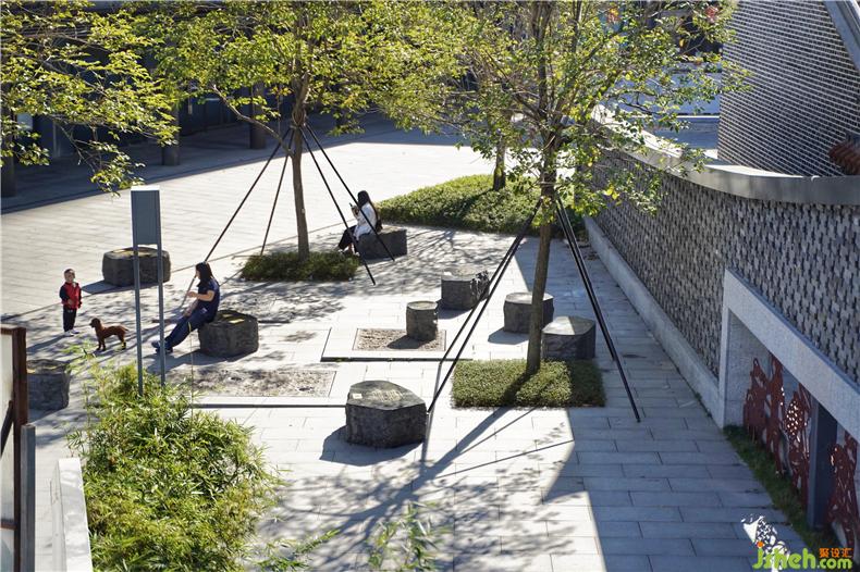 景觀空間布局講究,由內(nèi)向外豐富。內(nèi)部強(qiáng)調(diào)與建筑的整體感,裝修設(shè)計延續(xù)傳統(tǒng)院落文化、禮儀格局,保留“坊”," 巷",“街”等村莊印象。外圍空間則以周邊功能業(yè)態(tài)有機(jī)的聯(lián)系在一起,設(shè)置廣場、景觀小品、休閑座椅,豐富場地的空間體驗,讓人們能夠參與其中與環(huán)境互動。