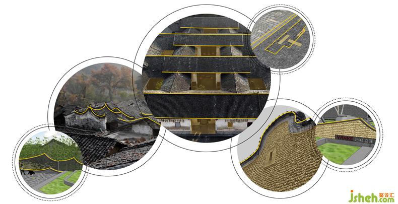 巧妙的運(yùn)用嶺南特色文化元素山墻、斗拱、青石板、青磚、瓦片、蠔墻、農(nóng)具、嶺南雕花、琉璃拼花等,通過(guò)設(shè)計(jì)重構(gòu),融入到景觀設(shè)計(jì)中,點(diǎn)滴細(xì)節(jié)皆是嶺南文化的縮影。