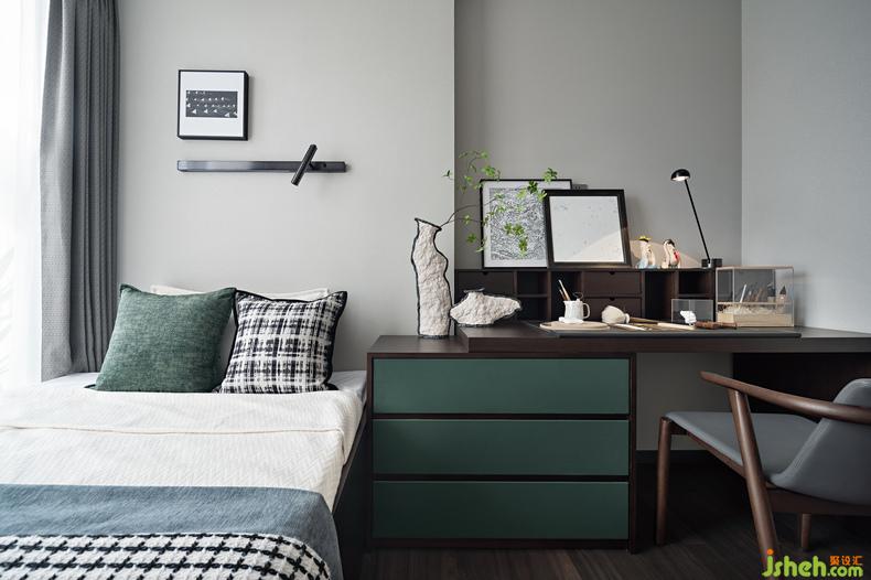客臥的設(shè)計(jì)感知同樣彰顯著主人對(duì)生活的理解,一張榻榻米的多功能詮釋,一個(gè)更像工作室的手作空間,給生活更多洞察的可能,主人在DIY工作臺(tái)上將生活中的點(diǎn)滴沉淀,凝結(jié)生活中的睿智與感動(dòng),用心去生活,用生活去回應(yīng)生機(jī)。