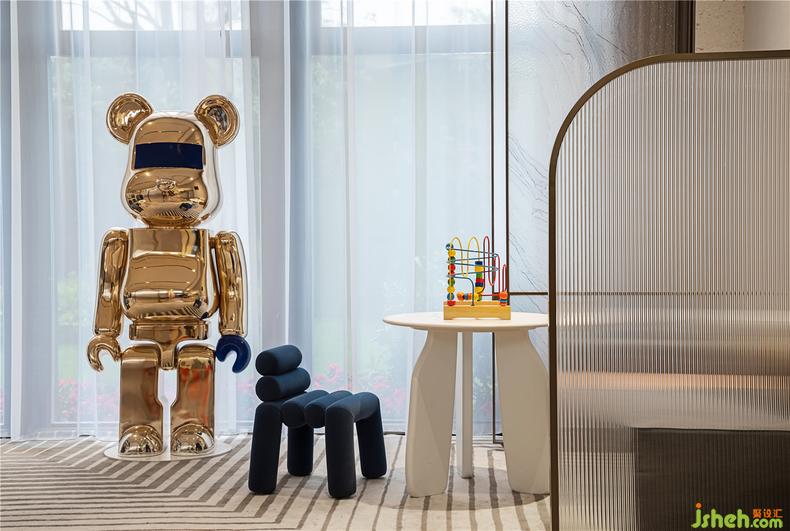 兒童區(qū) 丨明麗的撞色與潮流玩偶迎接著每一份到來這里的天真快樂,短絨溫柔親切如手,裝修設(shè)計在玩鬧間也呵護(hù)著孩童的安全,簡單的玩具慰藉孩童時光,小小的空間僅設(shè)計融于人性與日常,將陪伴帶入悠閑自在的情境。