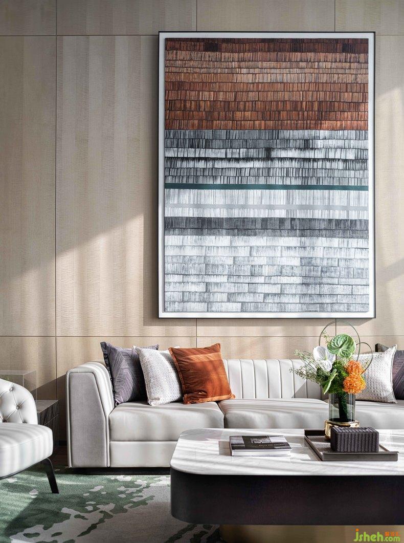 深洽區(qū)丨坐擁整個(gè)空間的無敵視野,更加直觀的感受空間內(nèi)無處不在的現(xiàn)代線條,室內(nèi)設(shè)計(jì)師藝術(shù)抽象的掛畫、精致玲瓏的工藝品、柔軟別致的抱枕、清新的綠植插花,中和了整個(gè)空間平直的線條感,豐富了空間沉靜的氛圍,煥發(fā)著當(dāng)代活力氣息。