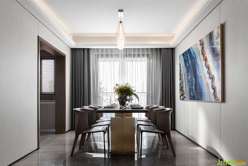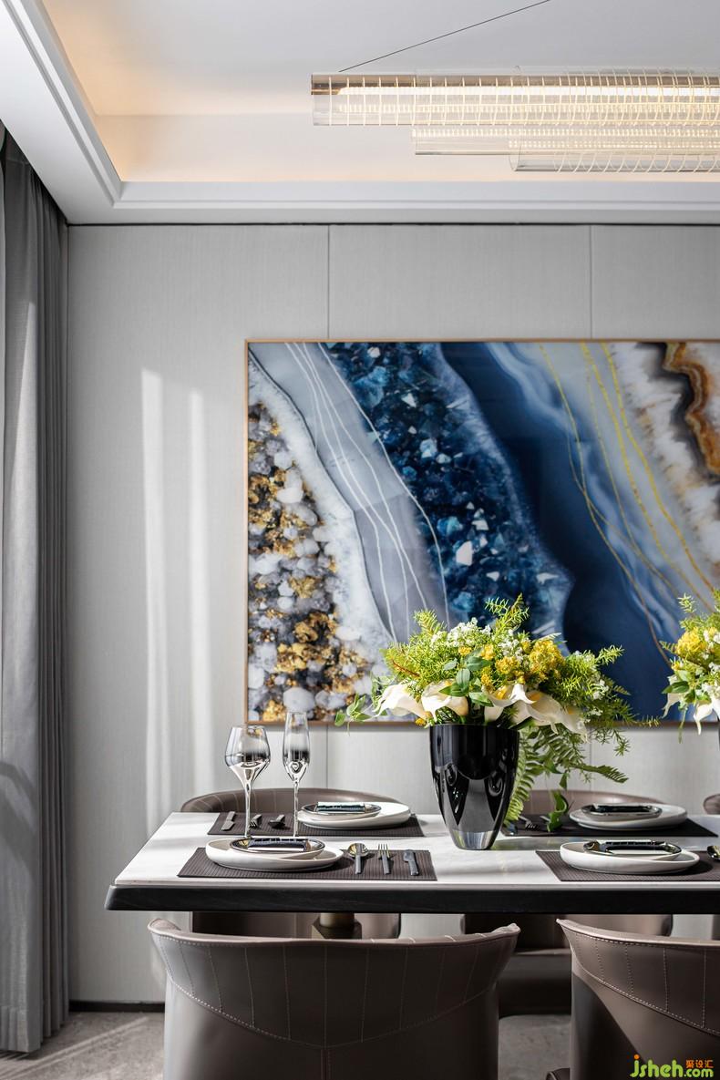 餐廳丨通過細(xì)節(jié)與各種材質(zhì)的探索去創(chuàng)造出戲劇化的效果,增添生活中的儀式感,綻放享受與品位的魅力,棕色系和諧簡約的底色襯托出家居與餐具的簡約大氣,恰如其分的營造出舒適奢享的生活氛圍。