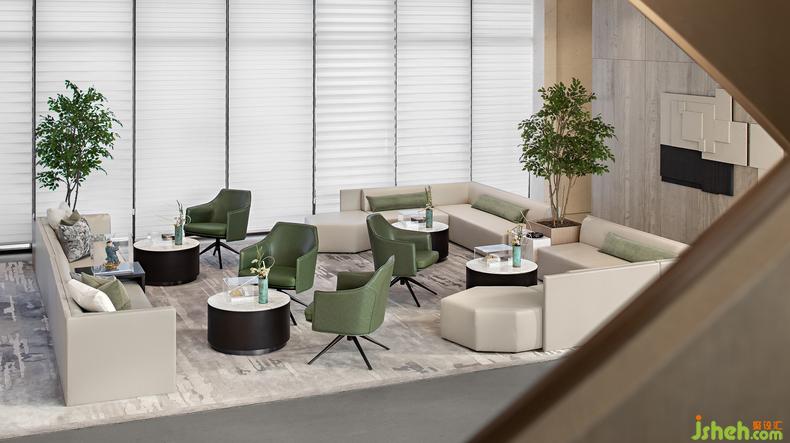深度洽談區(qū) 丨米白與綠意生機(jī)交織蔓延,優(yōu)雅閑適流動在空間的線條與縫隙中,裝修設(shè)計線條感的組合沙發(fā),既滿足視覺與感覺的舒適感,也滿足場地功性能使用、靈活多變的需求。