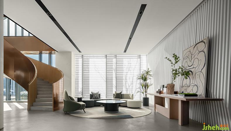 創(chuàng)作暖場區(qū) 丨流浪的線條在此找到歸宿,大面積的灰色與清新溫柔的綠調(diào)在空間內(nèi)游弋,裝修設(shè)計百葉窗環(huán)繞玻璃立面,陽光見縫插針的撒進(jìn)來,一旁的長桌上擺放的香薰器物,此刻的你,可以窩在沙發(fā)里享受閑暇,也可以擺弄時光。