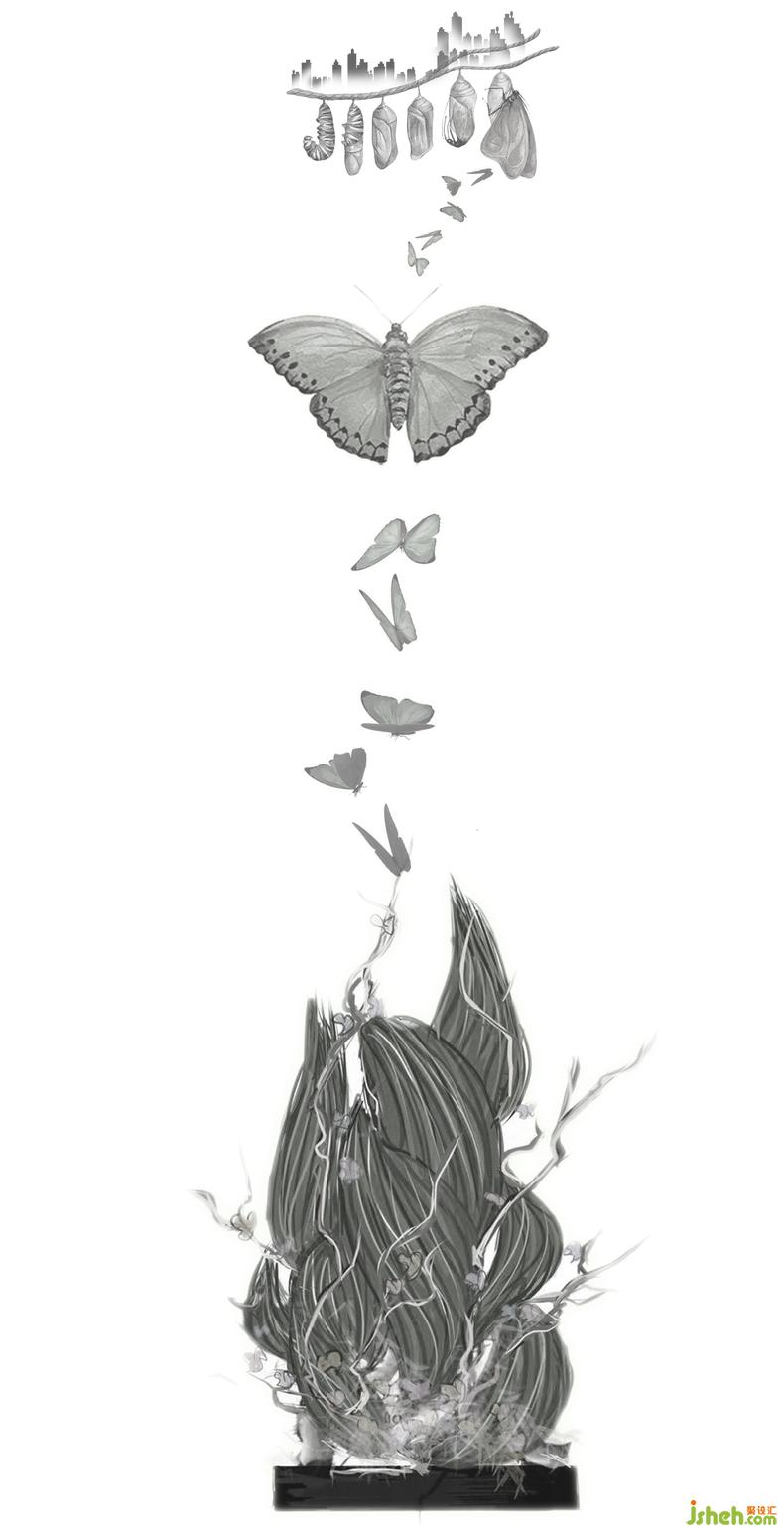 城市發(fā)展與生物的進(jìn)化同理,從蟄伏-蛻變-綻放,將這個(gè)過(guò)程通過(guò)藝術(shù)與功能的結(jié)合,在空間里給予人們精神力量。