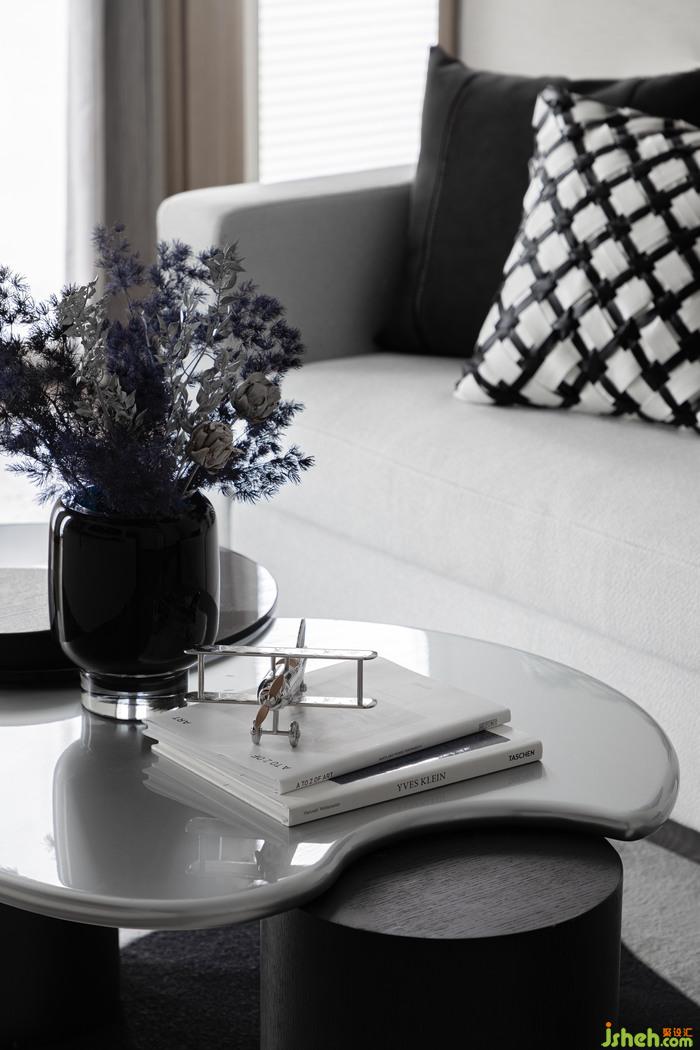 客廳丨黑與白的極致視覺,像是對建筑的干預(yù)中加入空間和繪畫的體驗(yàn),讓感官超越物理限制,在抽象的維度里解放個性的多元,如同連接了二維與三維世界,讓維度的界限消散在空間里,給生活變幻的體驗(yàn)