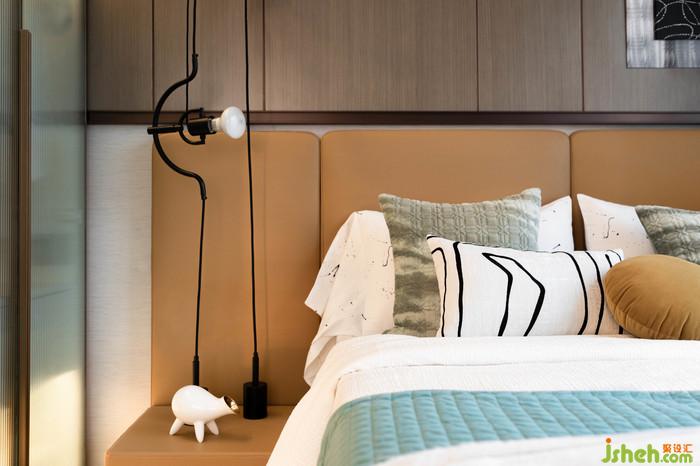 主臥丨主臥的設(shè)計(jì)追求舒適的極簡(jiǎn)主義,樣板房設(shè)計(jì)結(jié)合現(xiàn)代與經(jīng)典,遵循規(guī)整的動(dòng)線和寫實(shí)的格局,通過暖色系與木調(diào)的雙重色調(diào)主導(dǎo)空間,提升空間的亮度和質(zhì)感,以“少即是多”為居住理念,在空間中精心架構(gòu)起居的愜意和隨性
