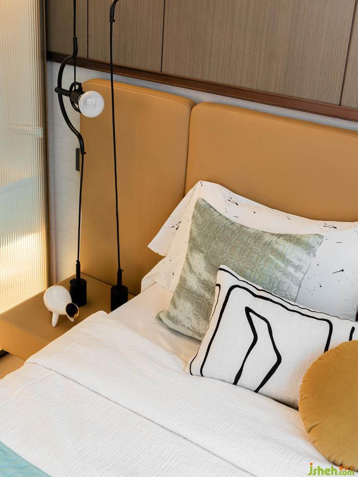 客臥丨在木質(zhì)的裝飾之下,延續(xù)整體溫暖時(shí)尚的調(diào)性,通過光影的點(diǎn)綴和色彩的提升,給家的空間在美學(xué)之上,增添了更多的安寧和美好,以可觸摸可感知,與居者建立心理上的連結(jié),讓放松舒適的氛圍貫穿生活。