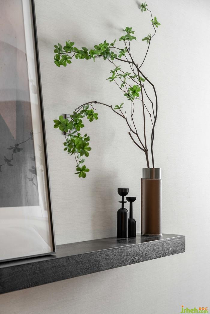 客廳細(xì)節(jié)丨在客廳的空間里,細(xì)枝末節(jié)都是對(duì)舒適一次具象感官的演繹,方正的空間在暖調(diào)的光影包裹下,泛著柔和的氣泡,寫意的壁畫,創(chuàng)意的陳設(shè),打破了空間的界限,在不同形態(tài)的幾何體塊的鋪陳下,促進(jìn)了邊界空間內(nèi)的現(xiàn)象學(xué)敘事