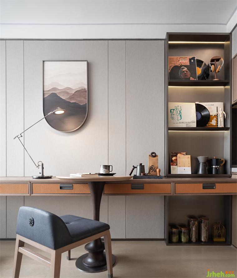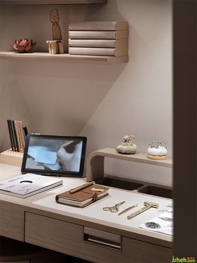 工作室丨樣板房設(shè)計整面的柜體將和工作的資料與物品被整理得井井有條,操作臺上的工具都是用慣手的,那些不常用的都收納在一旁的柜子里,抽屜里放著各種組合的材料與樣式,長長的操作臺給她實現(xiàn)夢想的基礎(chǔ),靜謐包容的空間完整她所有的想象。