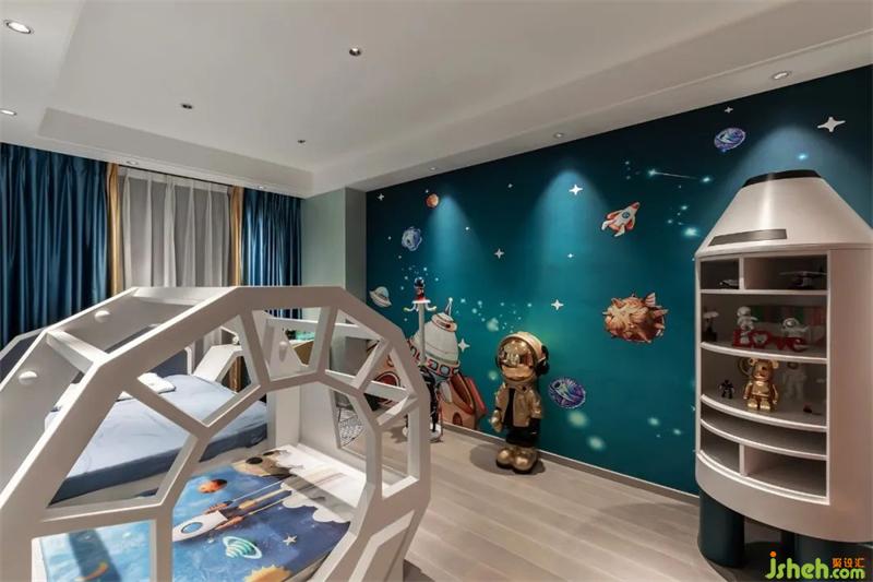 藍色是小時候男孩子都喜歡的顏色,空間的軟裝更貼切男孩子的喜好。